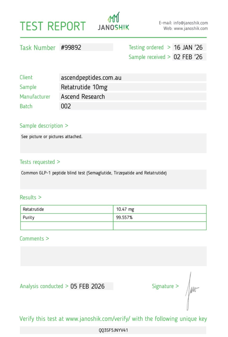 Manufactured in a GMP-compliant facility with batches tested to confirm ≥99% purity.